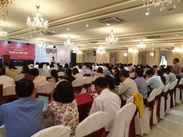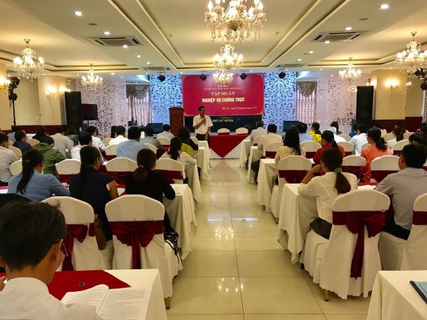 Tại lớp tập huấn, các học viên cũng được nghe các báo cáo viên là lãnh đạo cấp Cục và cấp Phòng của Cục Hộ tịch, quốc tịch, chứng thực trình bày các nội dung cơ bản của Nghị định số 23/2015/NĐ-CP ngày 16/02/2015 của Chính phủ về cấp bản sao từ sổ gốc, chứng thực bản sao từ bản chính, chứng thực chữ ký và chứng thực hợp đồng, giao dịch và Thông tư số 20/2015/TT-BTP ngày 29/12/2015 của Bộ Tư pháp quy định chi tiết và hướng dẫn thi hành một số điều của Nghị định số 23/2015/NĐ-CP; trao đổi về kinh nghiệm thực tiễn, cách thức xử lý một số tình huống cụ thể; lưu ý một số sai sót thường gặp trong công tác chứng thực mà Cục Hộ tịch, quốc tịch, chứng thực đã nắm bắt được qua quá trình thực hiện thanh tra, kiểm tra chuyên ngành tại các địa phương trong cả nước; giải đáp trực tiếp những khó khăn, vướng mắc, kiến nghị của học viên.