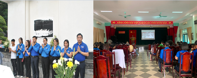 Tiếp tục cuộc hành trình, Đoàn dâng hương tưởng nhớ các anh hùng liệt sỹ tại Khu di tích Ngã ba Đồng Lộc, tại đây các thành viên trong Đoàn đã được xem phóng sự ngắn về lịch sử địa danh Đồng Lộc. Vị trí ngã ba Đồng Lộc là giao điểm của quốc lộ 15A và tỉnh lộ 2 (Hà Tĩnh). Trong những năm tháng kháng chiến chống Mỹ, mọi con đường chi viện từ Bắc vào Nam đều phải đi qua nơi đây. Chính vì sự hiểm yếu này mà không quân Mỹ đã liên tục cho máy bay ném bom đánh phá Đồng Lộc nhằm mục đích cắt đứt huyết mạch giao thông của quân dân ta hướng về miền Nam. Vì thế, Đồng Lộc còn được mệnh danh là “tọa độ chết” khi mỗi m2 nơi đây đều phải gánh tới 3 quả bom tấn. Trưa ngày 24/7/1968, Tiểu đội 4 (do chị Võ Thị Tần làm tiểu đội trưởng) thuộc Đại đội 552 được lệnh san lấp hố bom ở khu vực địch vừa ném bom để thông đường cho xe đi qua. Nhận nhiệm vụ, các chị đã đến hiện trường gấp rút san lấp, mở đường. Đến 16:30, trận bom thứ 15 trong ngày dội xuống Đồng Lộc. Một quả bom đã rơi trúng 10 cô gái. Cả trận địa lặng đi, rồi vỡ òa bởi tiếng khóc. Các cô gái đã hy sinh ở lứa tuổi đẹp nhất cuộc đời.